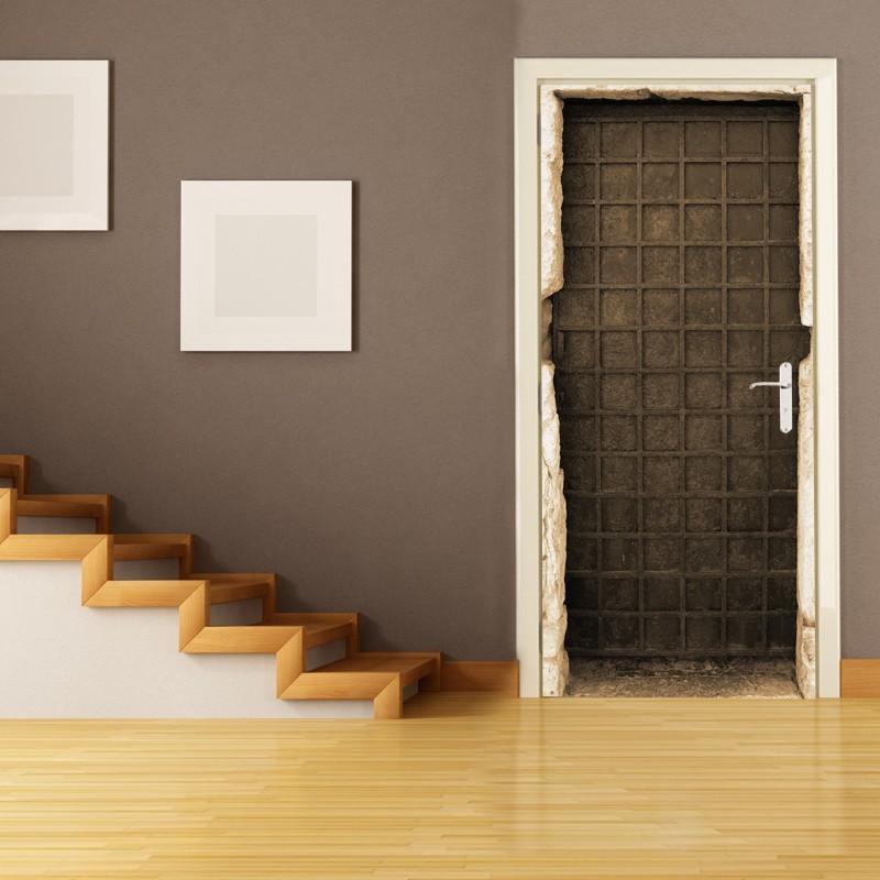 Naklejka na meble z motywem starych stalowych drzwi.