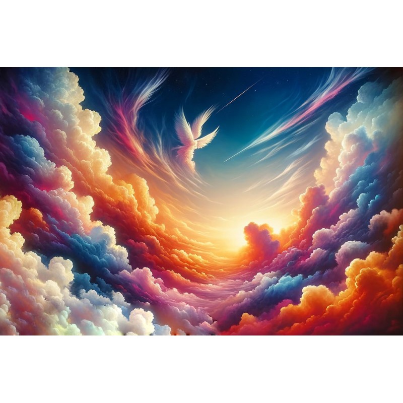 Radosna tapeta na ścianę kolorowe chmury opływające błękit nieba. Zyskaj ożywczą atmosferę wielokolorowych obłoków w swoim pokoju. Tapetę zamówisz na wymiar ściany. Koniecznie sprawdź równie ładne fototapety chmury z kolekcji Agaton Studio
