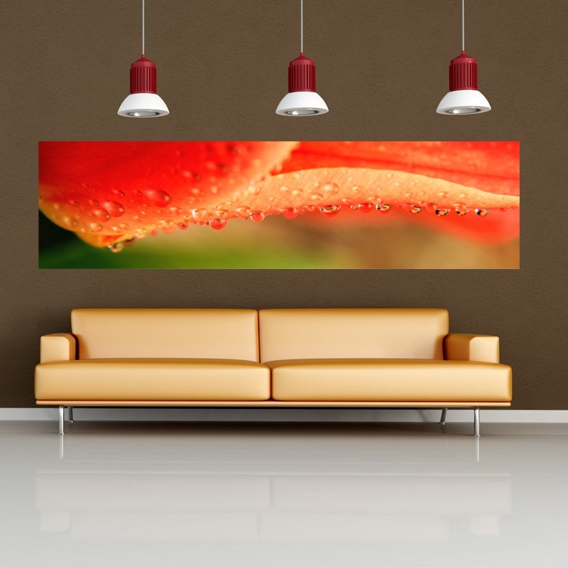 Fototapeta zroszony tulipan w kolorze pomarańczowym. Panoramicznie ułożony wzór świetnie sprawdzi się w kuchni między wiszącymi szafkami i blatem roboczym. Soczysta kolorystyka pomarańczy i delikatna zieleń tła napawają radością i optymizmem. Stylowa fototapeta z ładnym tulipanem może zostać wydrukowana na wymiar ściany. Napisz do nas lub zadzwoń - przygotujemy wizualizację i wycenę.