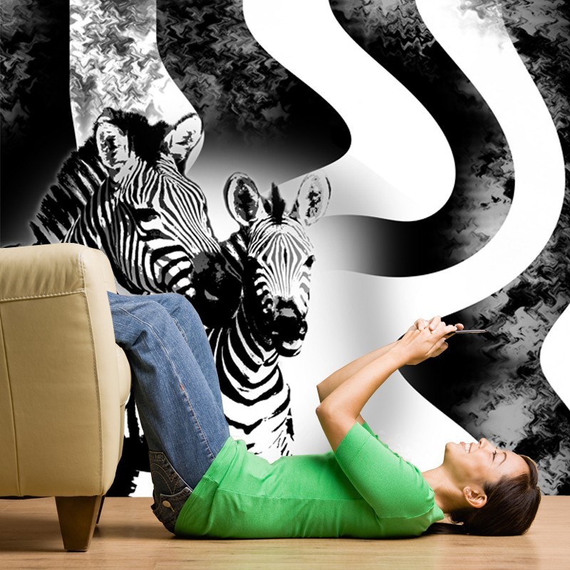 Szara Fototapeta Zebry w stylu graficznym. Innowacyjna w przekazie fototapeta czarno biała z zebrami o niezwykłej stylizacji. Artystyczny szlif łączący dynamikę pasów zwierząt ze statycznymi pasami tła. Tapetę z zebrami zamówisz na wymiar ściany. Możemy również do wzoru wprowadzić akcent kolorystyczny pasujący do Twojego pomieszczenia.