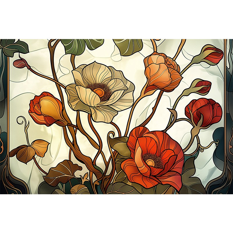 Stylowa fototapeta maki Art Deco w stylu graficznym. Spokojne zrównoważone kolory i lubiany motyw maków. Zamów na wymiar ściany.