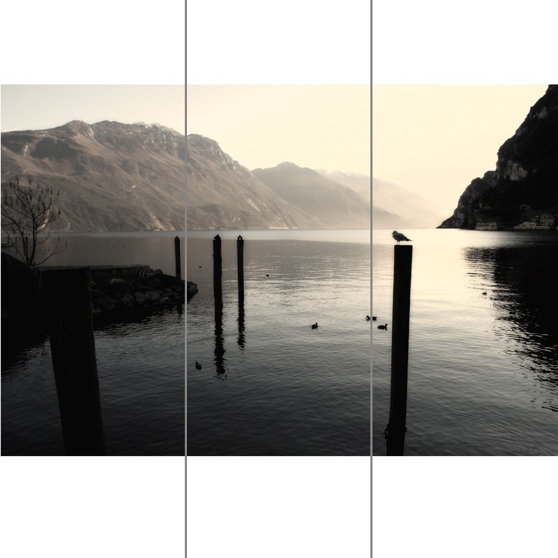 Naklejka lub fototapeta dedykowna do dekoracji szafy wnękowej. Wzór w stonowanych kolorach przedstawia Jezioro Garda we Włoszech