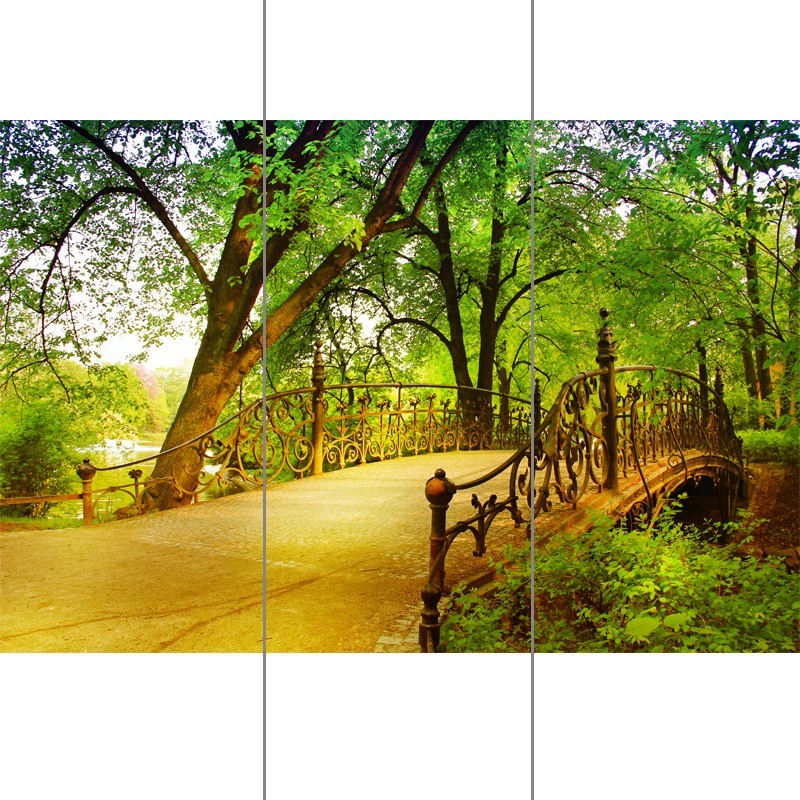 Naklejka lub fototapeta dedykowna do dekoracji szafy wnękowej. Piękny Park Południowy we Wrocławiu do umieszczenia na froncie szafy wnękowej. Urokliwy mostek prowadzi do serca parku tworząc zaciszną perspektywę natury.