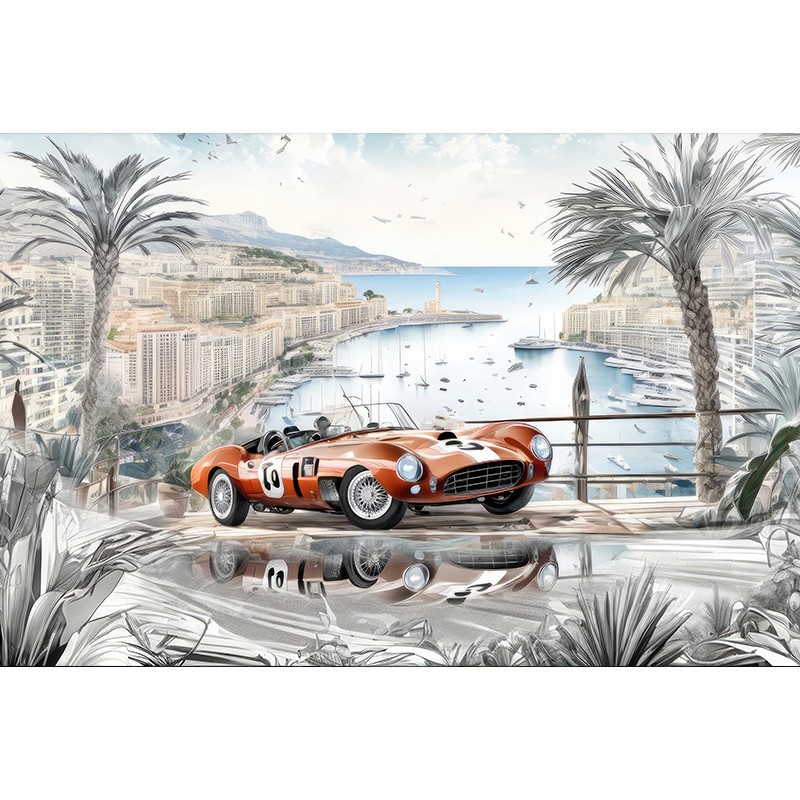 Naklejka lub fototapeta na szafę wnękową z samochodami dla chłopca/ dziecka. Piękna i kolorowa dekoracja z dynamiczną scenerią wyścigu samochodowego.