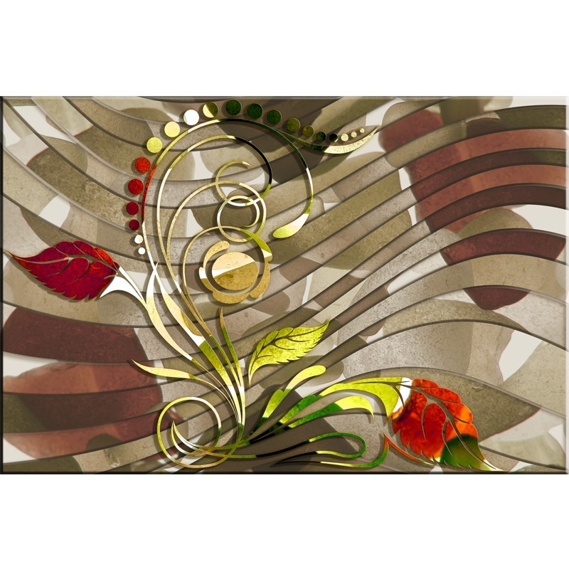 Obraz z kwiatowym wzorem o abstrakcyjnym rodowodzie, oraz niebanalnej kolorystyce, która przywodzi na myśl naturalny ogród. Delikatne kształty wzoru sprawiają że nie jest to agresywna dekoracja która natychmiast zmienia sposób w jaki postrzega się wnętrze, ale łagodna w której zmiany zachodzą delikatnie w łatwy do przyjęcia sposób. Taka dekoracja doskonale nadaje się do ozdobienia kuchni, salonu, sypialni, oraz przedpokoju.