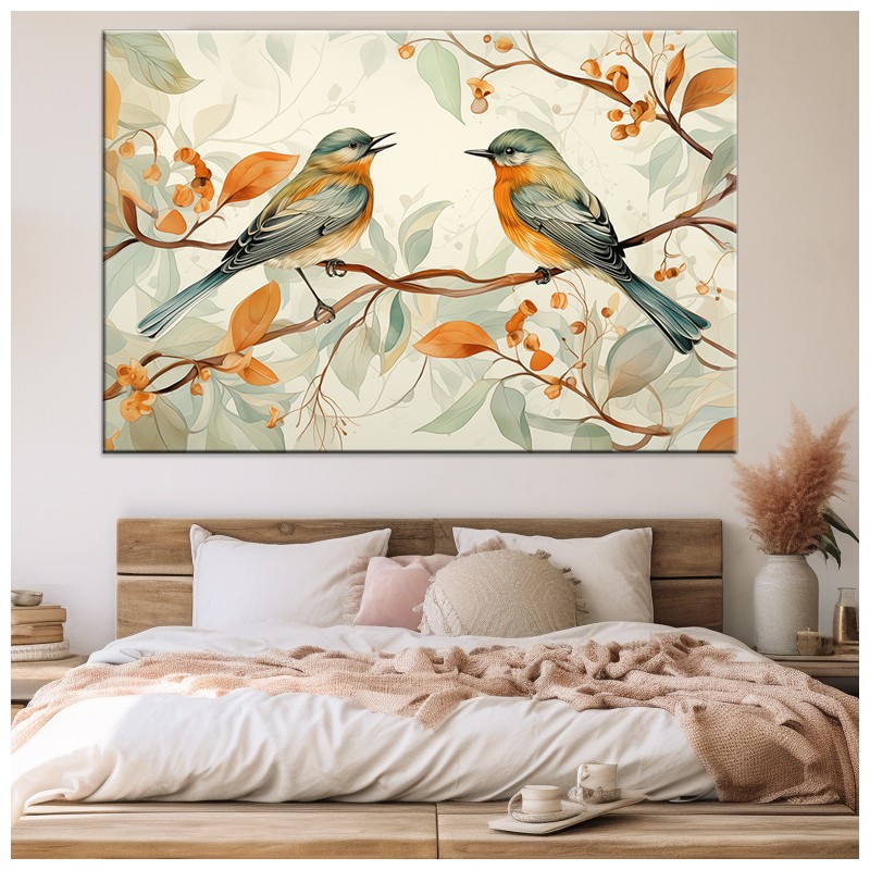 Ptaki na Gałęzi - Obraz na płótnie nr 10071