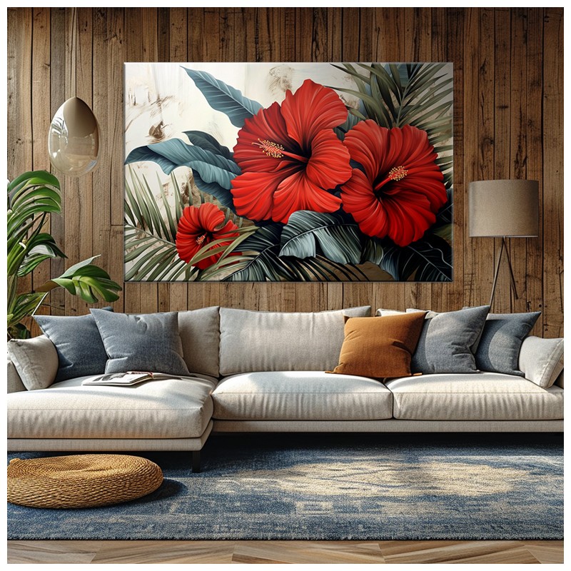 Obraz z hibiskusem polubisz za: imitację malarstwa klasycznego, bogactwo detali, wyjątkowo trwały wydruk na płótnie.