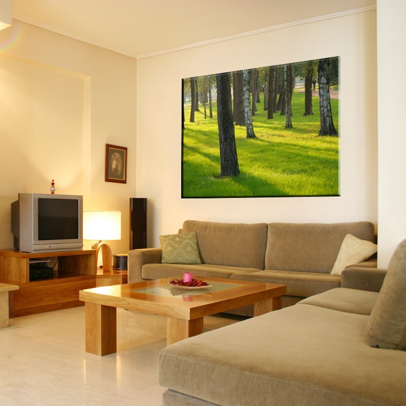 Obraz z zieloną trawą w samym środku parku, promienie słońca znaczą ziemię jasnymi pasami, na przemian z cieniami padającymi z różnych drzew. Ten wzór sprawi że do wnętrza zawita potężna fala pozytywnej energii, której efekty odczuwać będzie każdy kto odwiedzi pomieszczenie z tym obrazem. Taka dekoracja doskonale nadaje się do ozdobienia salonu przedpokoju, oraz sypialni. Więcej podobnych wzorów znaleźć można z łatwością w dziale drzewa.
