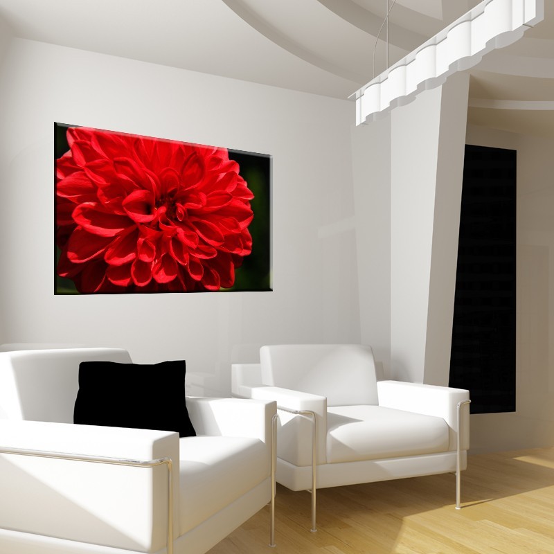 Obraz z czerwonym kwiatem którego płatki układają się na kształt drobnych kieliszków, na samym środku przebija się serce rośliny. Ciemne tło wokół głównego elementu kontrastuje z nim, sprawiając równocześnie że cała uwaga spada na roślinę. Taka dekoracja doskonale nadaje się do ozdobienia wnętrza salonu, sypialni, oraz przedpokoju, gdzie jej pozytywny wpływ każdy odczuje z łatwością. Więcej równie wspaniałych dzieł znaleźć można w kategorii kwiaty.