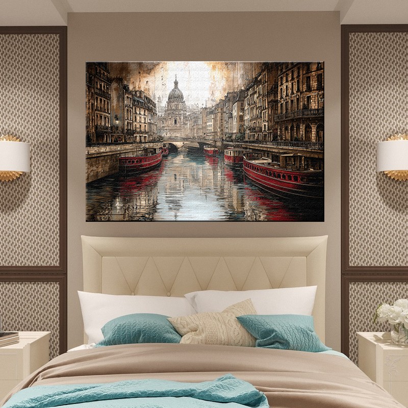 Wprowadź do wnętrza klimat paryskich uliczek i romantycznych nabrzeży. Obraz „Paryska przystań” to elegancka dekoracja inspirowana ciepłymi tonami sepii. Magia świateł stolicy Francji, która wzbogaci Twoją przestrzeń. Sprawdź inne obrazy Paryż z kolekcji Agaton Studio.