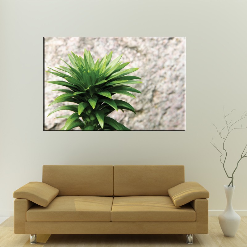 Zielona roślina każdemu kojarząca się z zielonym ananasowym czubem, jest to intrygujący wzór dzięki temu, iż nie ukazuje wszystkiego i zmusza obserwatora do domysłów na temat tego, co znajduje się za kadrem. Dzięki temu będzie to wspaniała dekoracja, która wprowadzi do każdego wnętrza niezwykły motyw, a przy tym wspaniale wyglądający wzór. Więcej dzieł o podobnej renomie znaleźć można w kategorii kwiaty.