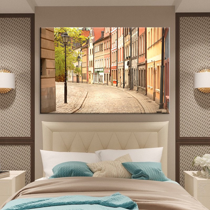 Obraz Psie Budy we Wrocławiu szczyci się zrównoważonymi kolorami oraz głębią brukowanej ulicy w perspektywie starych kamieniczek. Nastrojowy obraz na płótnie Wrocław z wiekową architekturą miasta. Chcesz wydrukować obraz z własnego zdjęcia? Napisz do nas lub zadzwoń. Profesjonalnie i w przystępnej cenie wykonamy indywidualną dekorację.