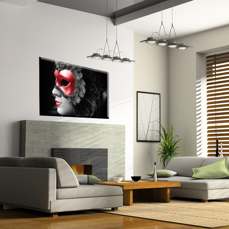 Obraz czarno - biały z wenecką maską. Jak sama nazwa mówi, uwagę przyciąga maska zaakcentowana mocnym, czerwonym kolorem, a także usta jako dodatek w tym samym kolorze. Obraz wykonany na naturalnym płótnie, które sprawia, że kolory wyglądają jak żywe. Zadzwoń 723-555-725.